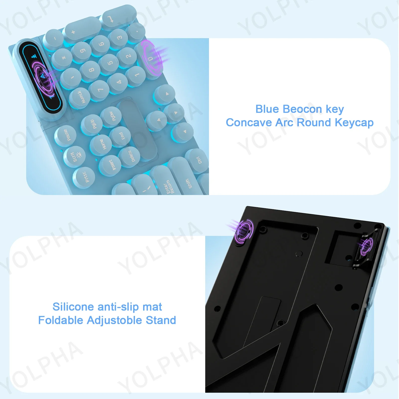 Blue keyboard- Blue backlight through keycaps, light can be turned off.
