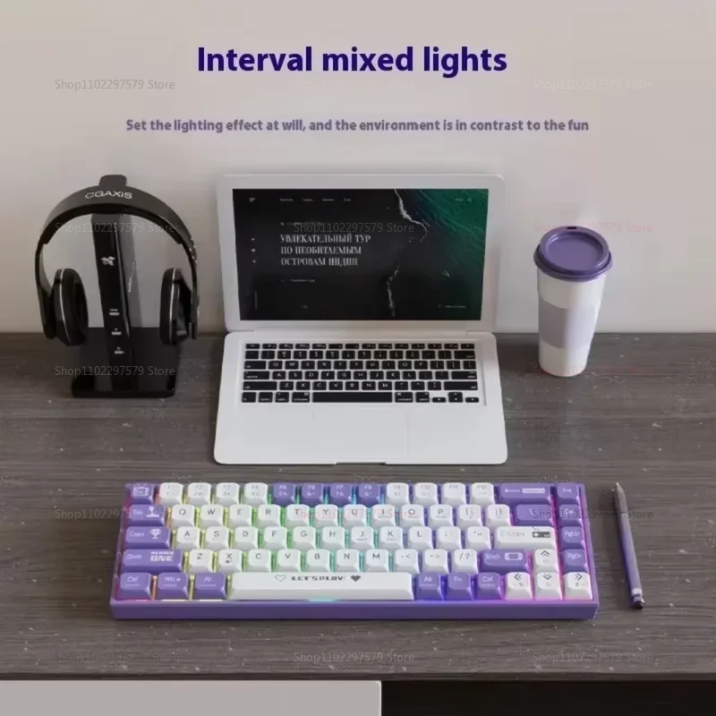 AK680 Wired Mechanical Keyboard 68 Keys Hot Swappable Custom RGB Backlit Compact Gaming Keyboard with Colorful Keycaps