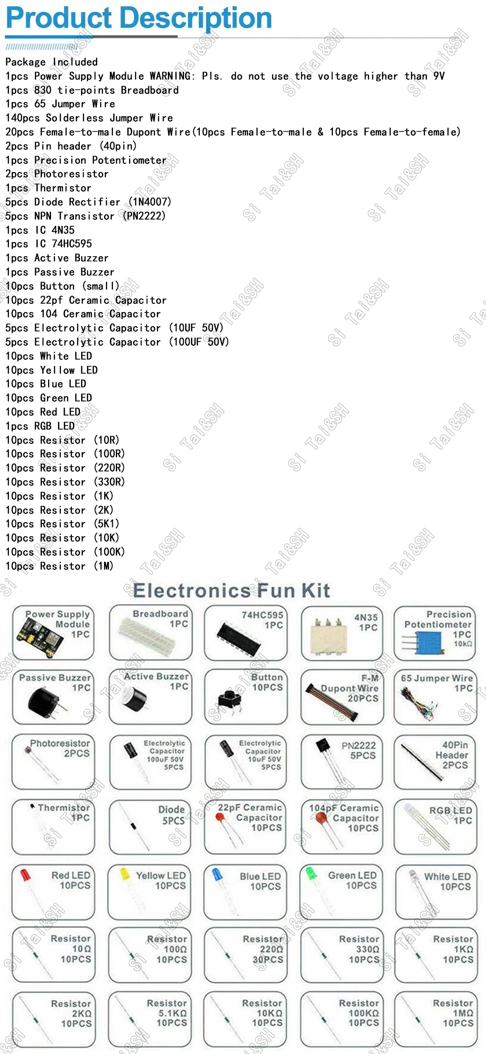 Electronic Components Kit Pack Starter DIY Project For Arduino R3 Common Capacitors Resistors Capacitors 830-well Breadboard