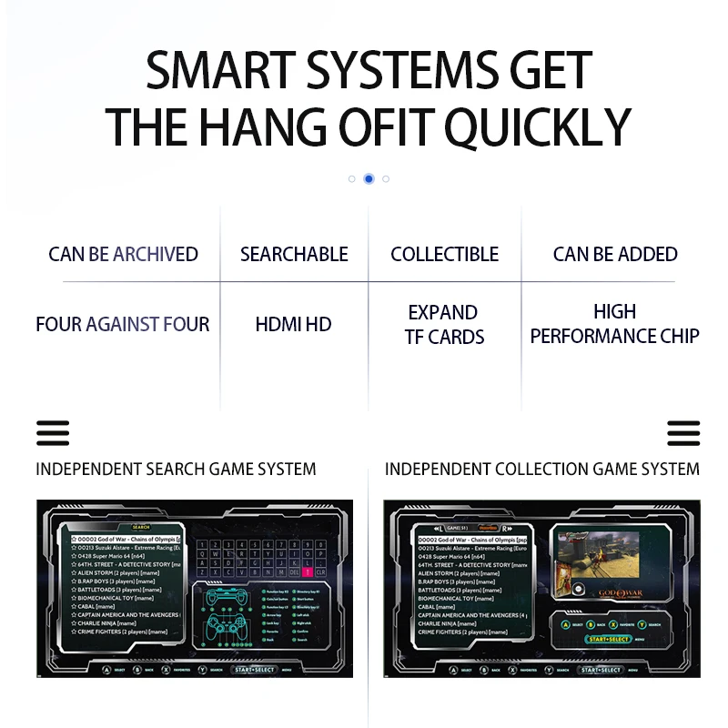 *4K HDMI Video Game Console :This video game console is suitable for ultra-high-definition TV/computer/monitor/projector, supports HDMI-compatible connection , has 1080P HD image quality, and can enjoy lively and interesting video games on the big screen!
