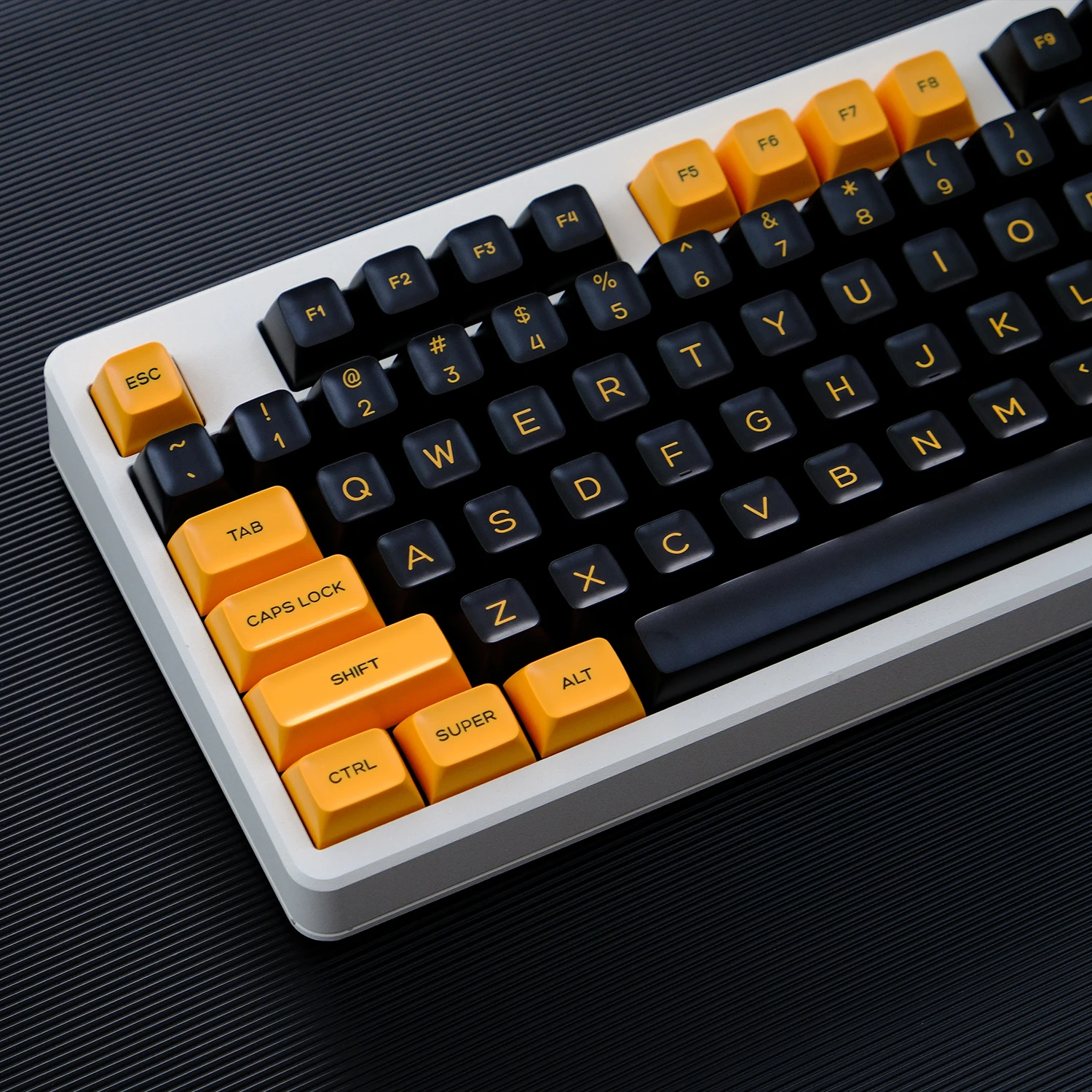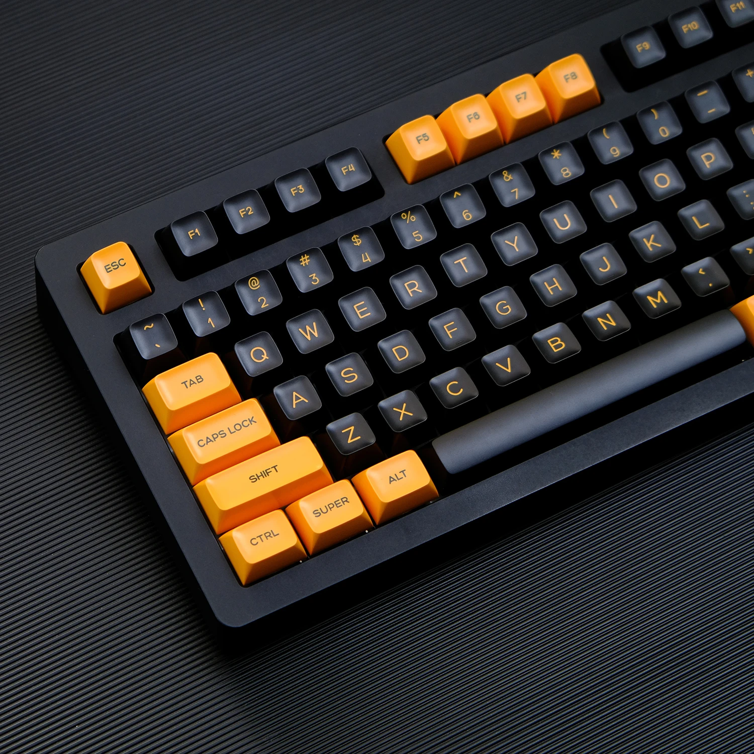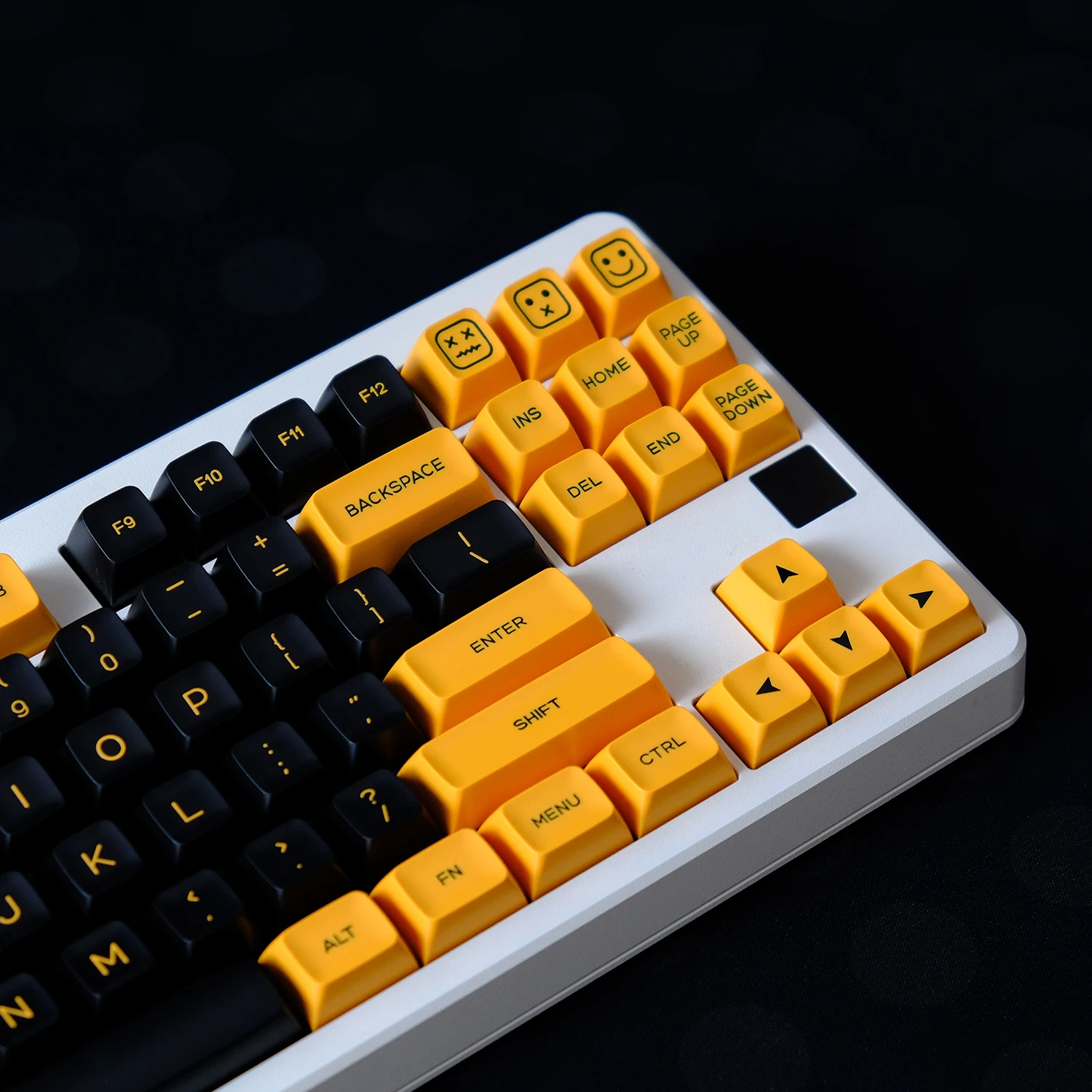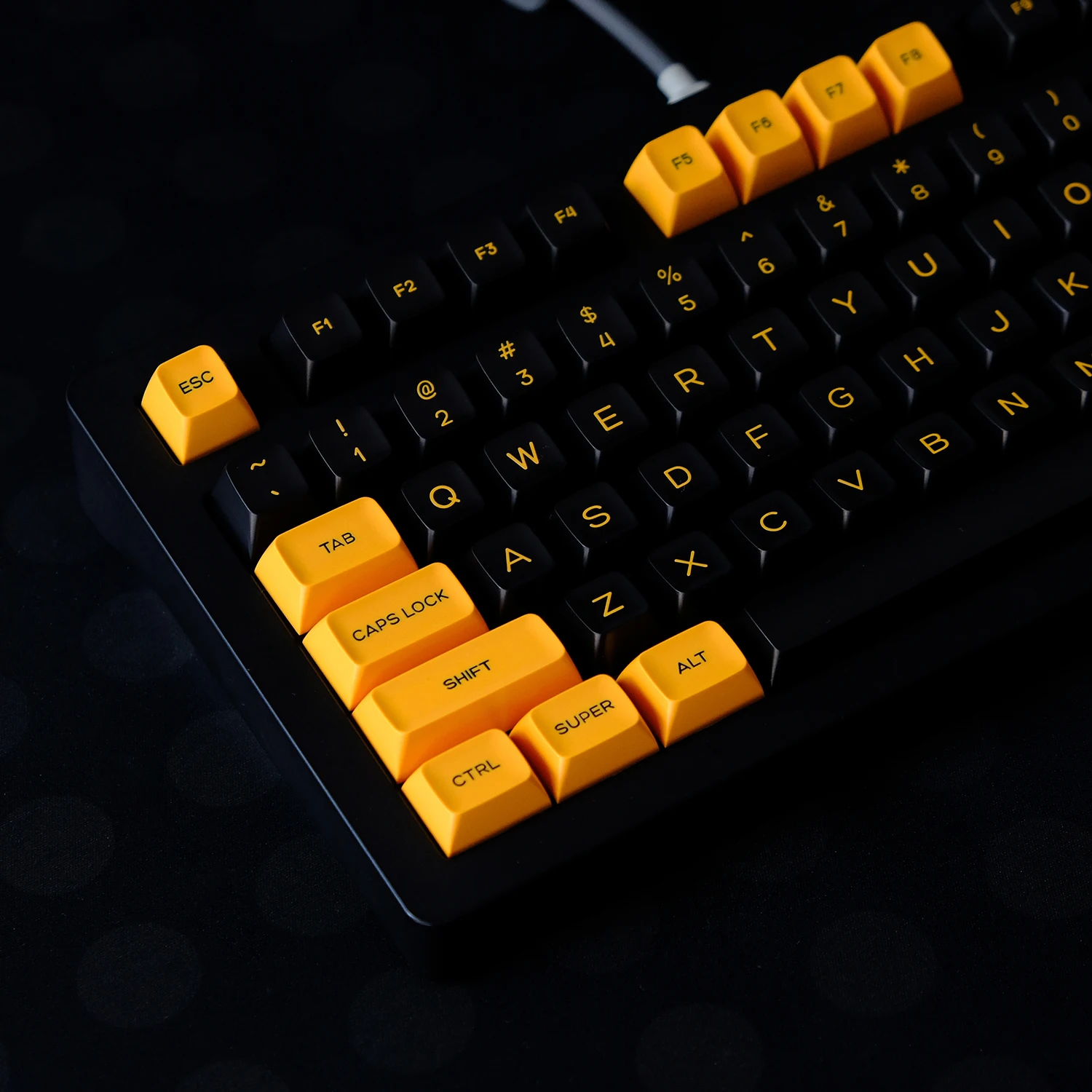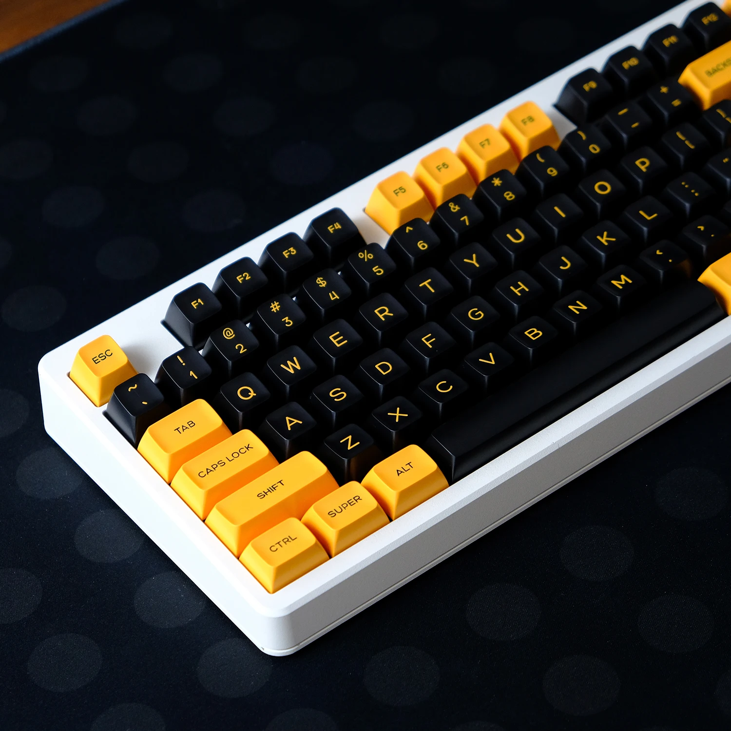 KBDiy PBT Keyboard Keycaps SA Profile Black and Yellow Keycap DIY Custom Double Shot 142 Keys Caps for MX Switch 61/64/87/980/75