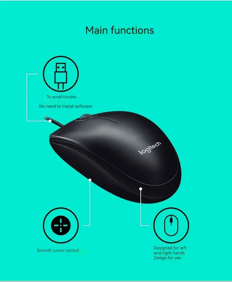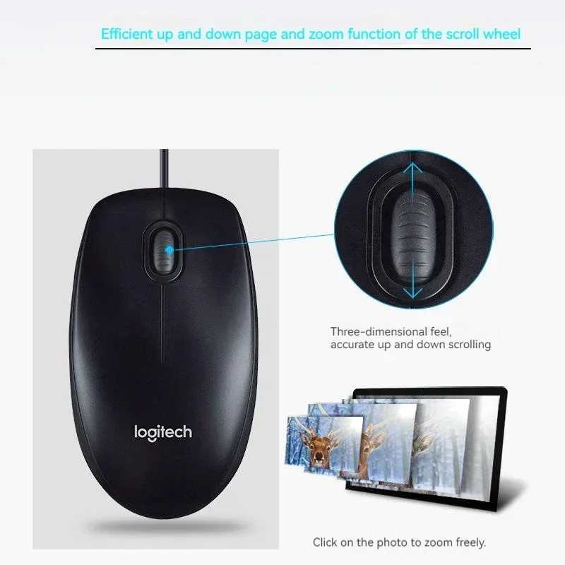 Logitech M100 Wired Mouse Comfortable Office Silent Mice Gaming Peripheral Connection Laptop Desktop Universal Light Speed Mouse