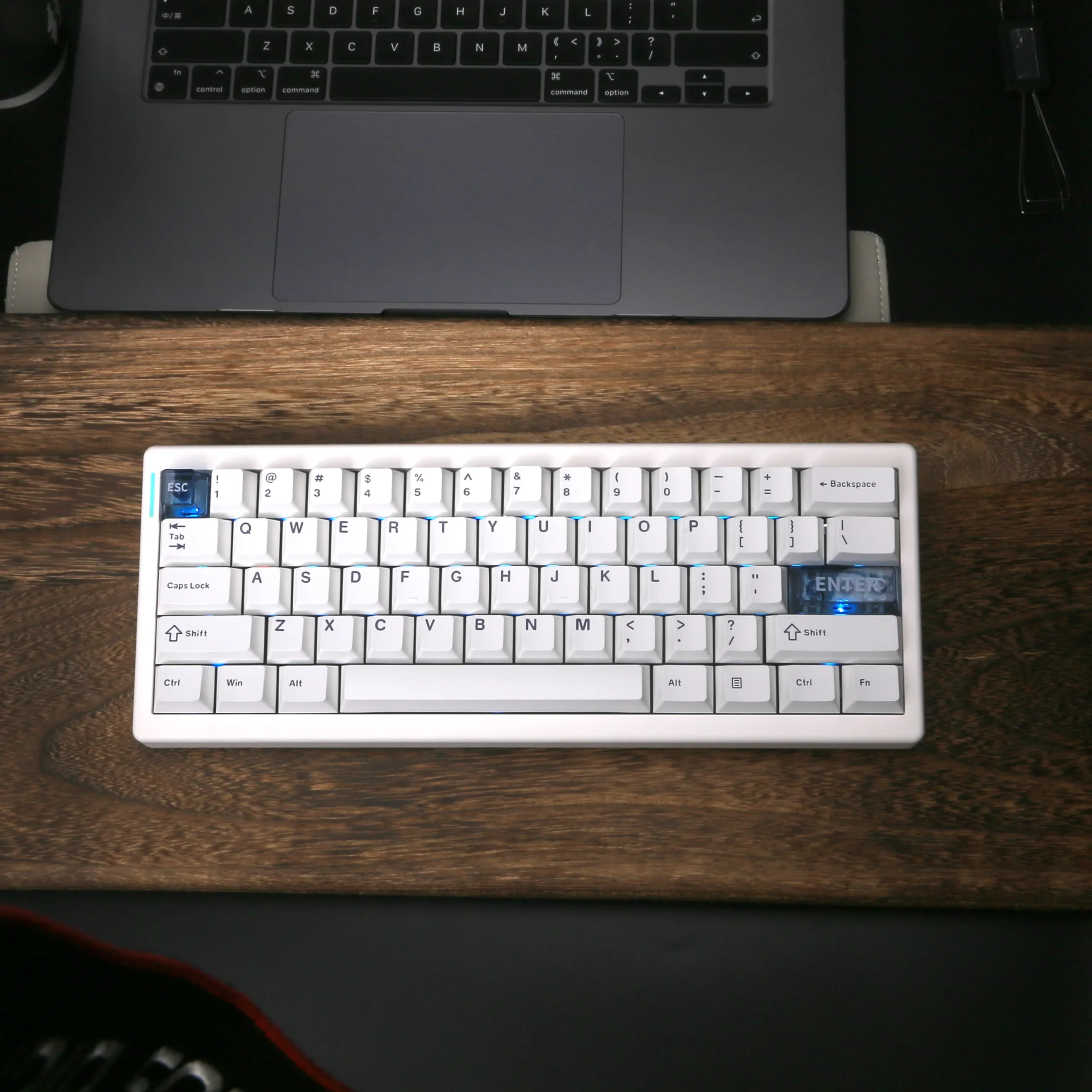 Keycaps Material: Double Shot PBT with 2 Transparent PC Keycaps