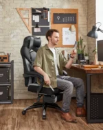 The 10 cm thick padding of the seat cushion and the footrest make this adjustable office chair uniquely comfortable