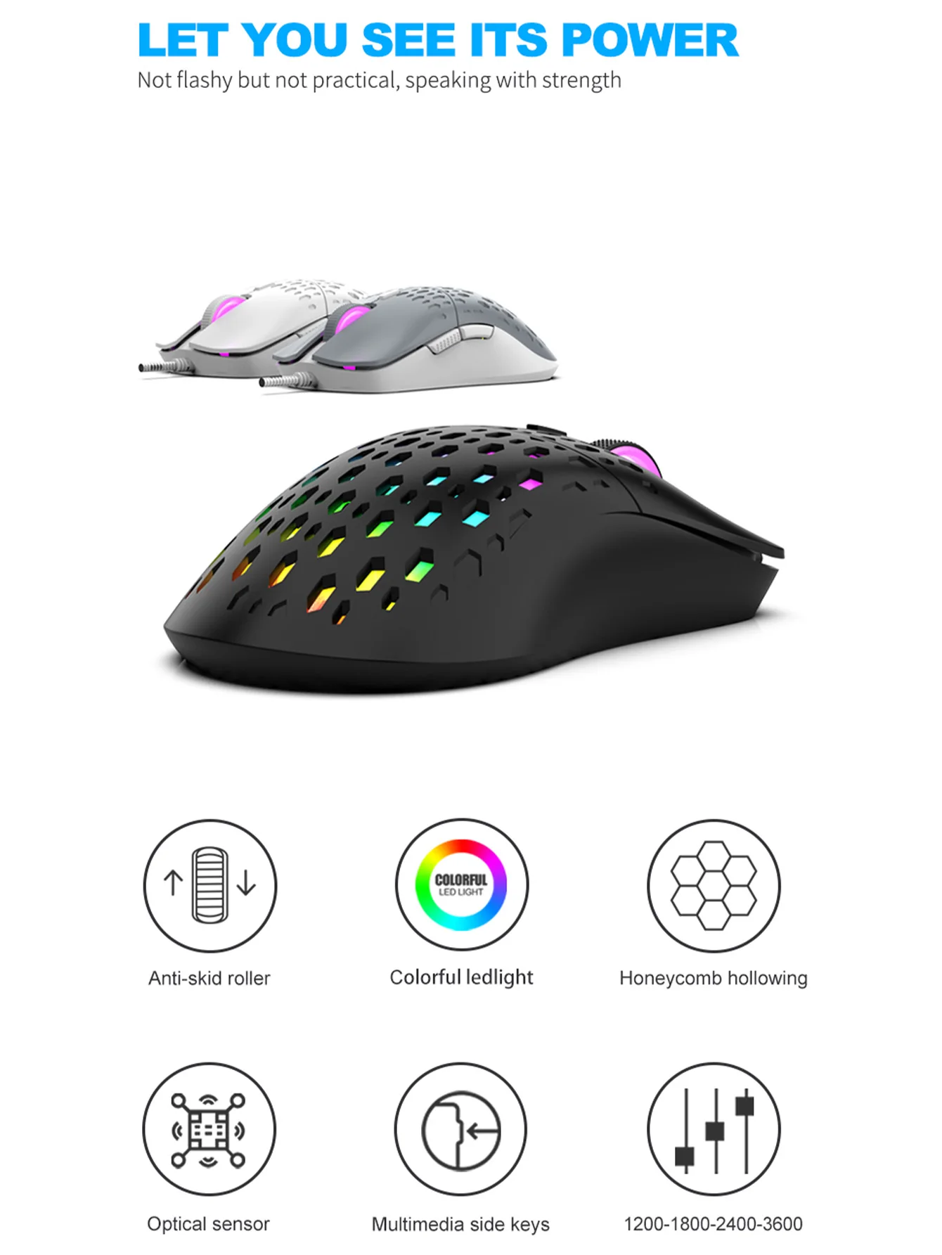 Be the first to review “Wireless gaming mouse, dazzling colorful light effect, variable DPI, fashionable honeycomb perforated mouse” Cancel reply